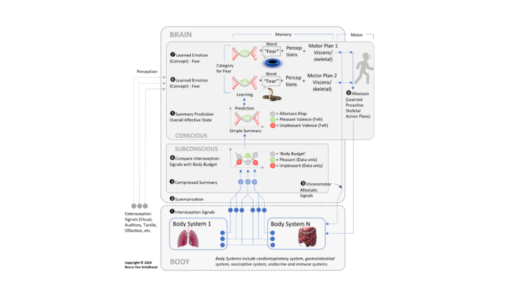 - By modeling these states as “felt” internal representations located in the agent’s somatotopic ‘Body Map’, the model creates embodied emotional awareness. The model’s developer argues that it doesn’t just provide “correlates” of feelings but explains the mechanism of how internal states become “felt” by the agent. How these subjective states are created, through homeostatic and allostatic control loop variables represented as somatosensory emotions, leading to embodied emotional awareness, is explained in this talk by Rocco Van Schalkwyk (How the Xzistor Mathematical Model of Mind creates Machine Emotions).